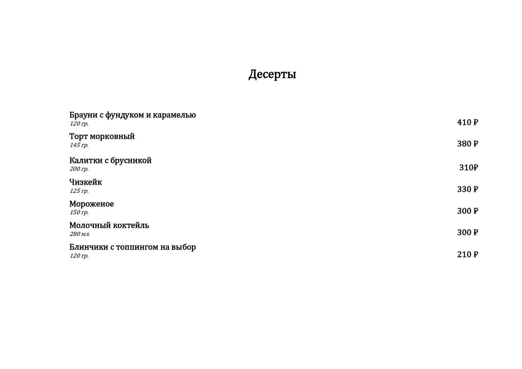 — Десерты. Завершите свой обед или ужин нашими десертами, приготовленными с любовью.